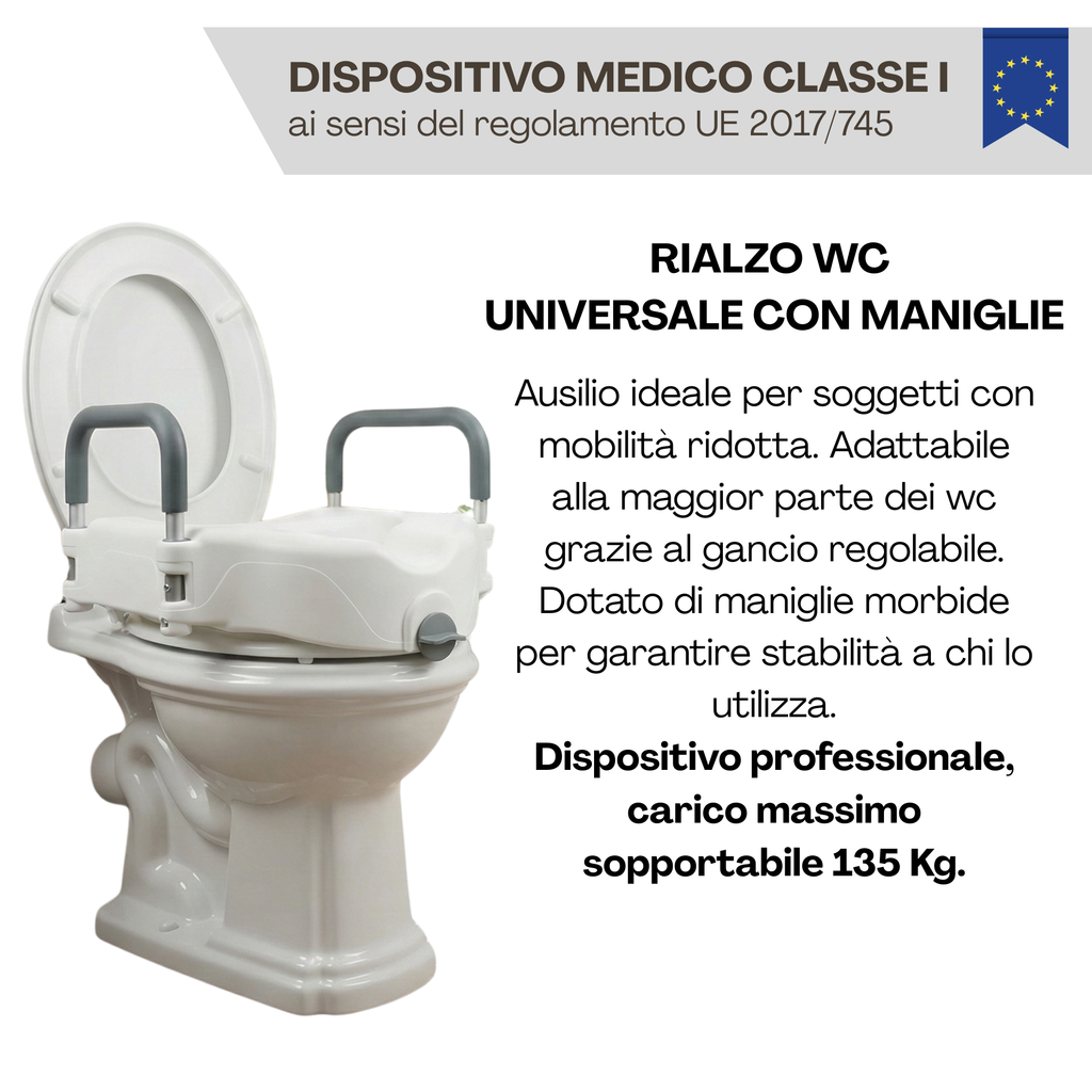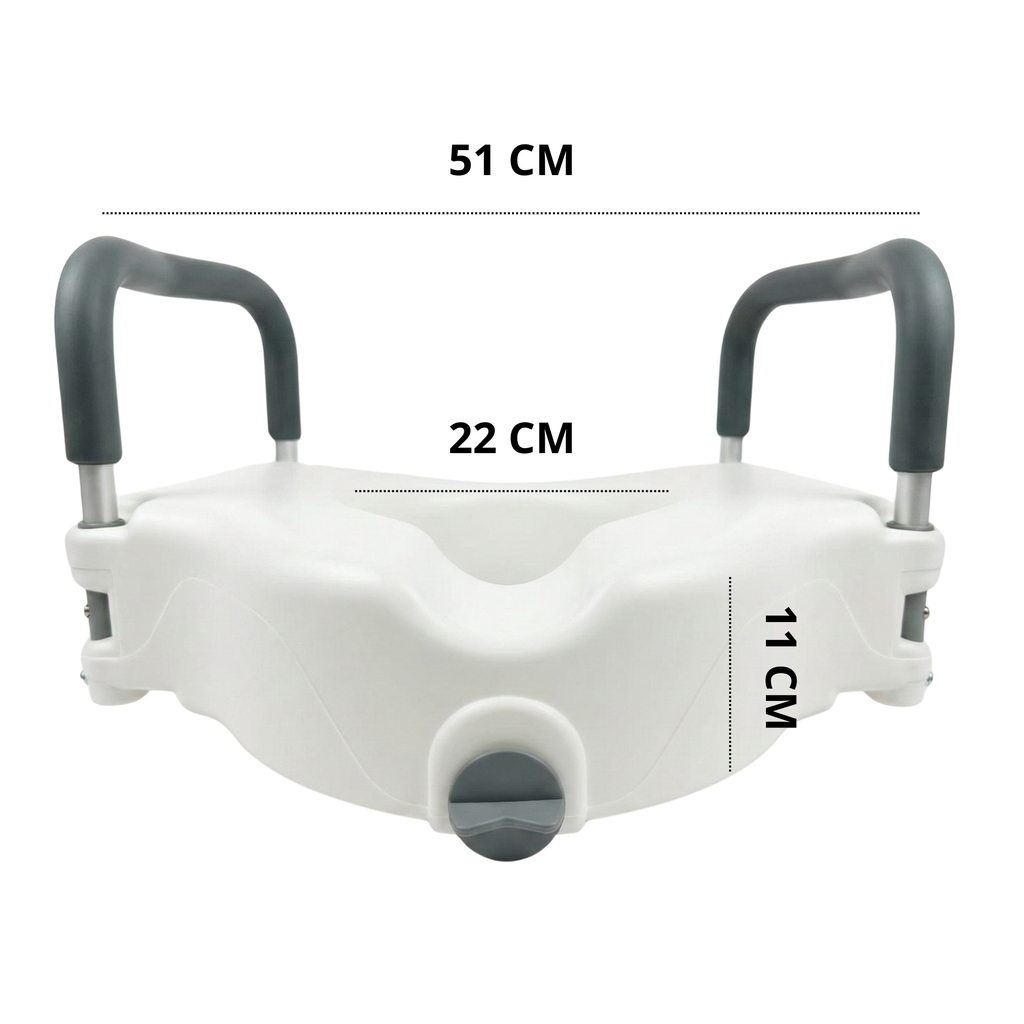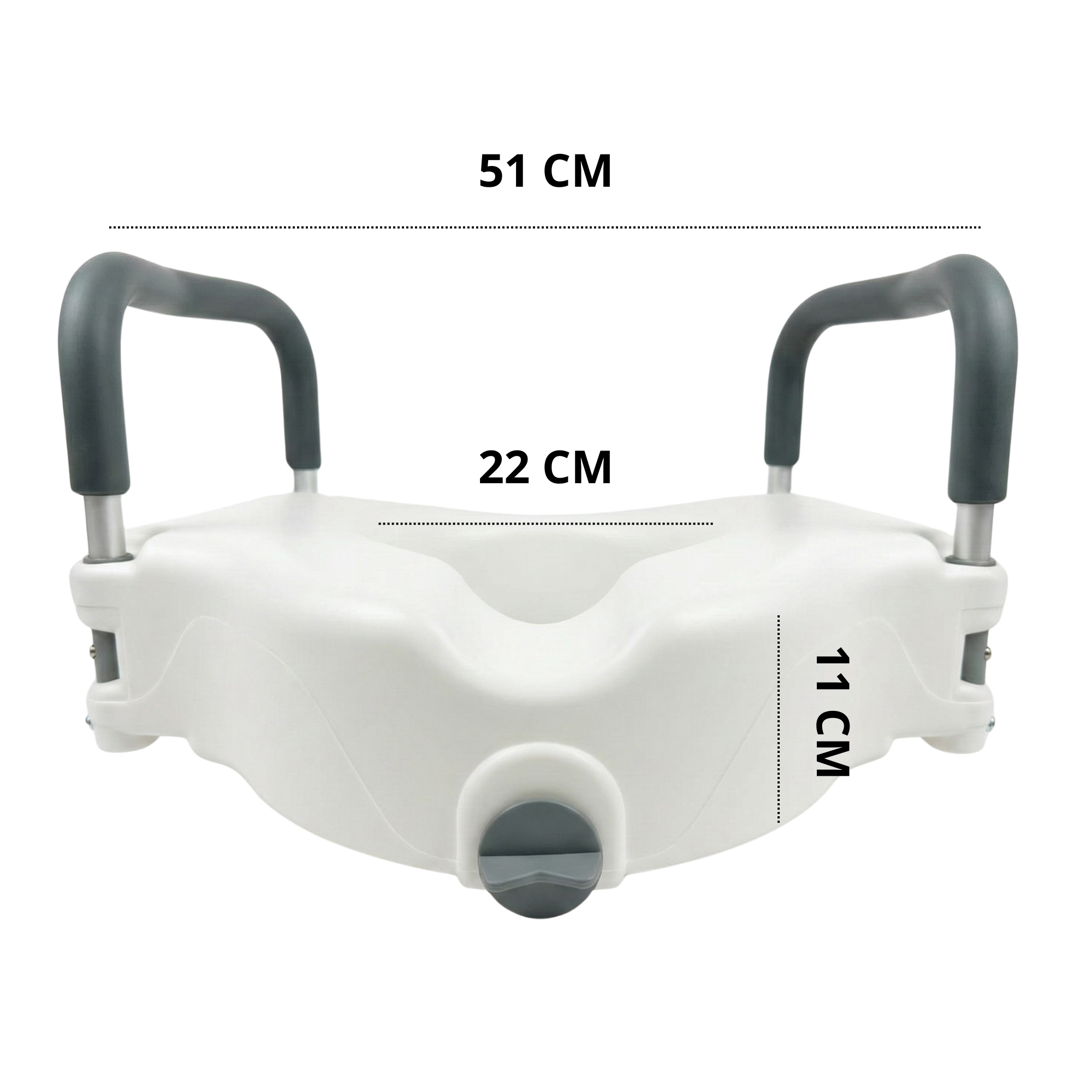 - SUPPORTO UNIVERSALE: Il rialzo wc è un ausilio sanitario alto 11 cm dotato di braccioli ideale per anziani e soggetti con difficoltà motorie. Dotato di perno regolatore per adattarlo a molteplici dimensioni di water.