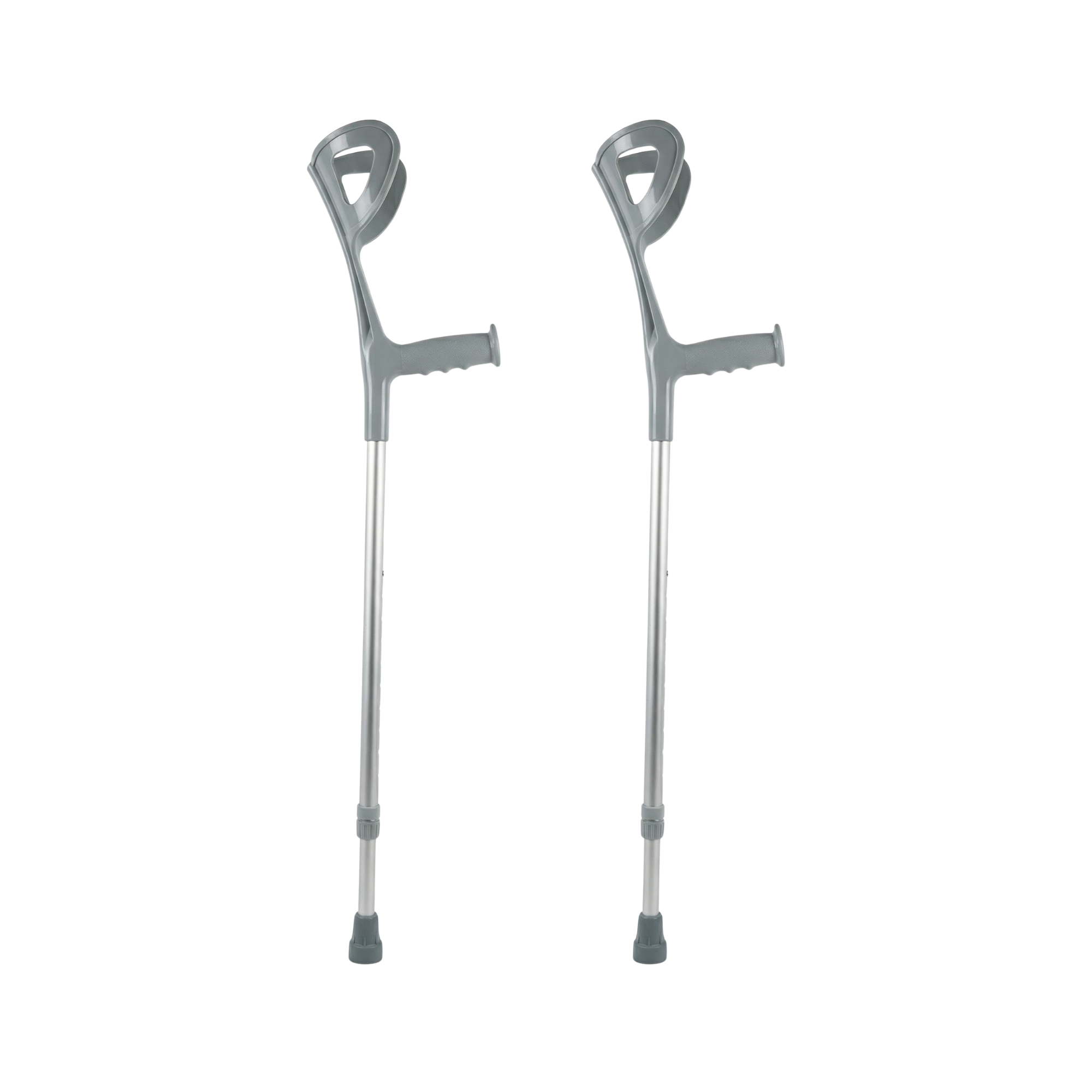 Kanadische Krücken mit eloxiertem Aluminiumschaft mit einem Durchmesser von 22 mm, höhenverstellbar mittels Clipstopp. Einstellbare Höhe, vom Boden bis unter den Griff: von cm. 75 bis 110 cm