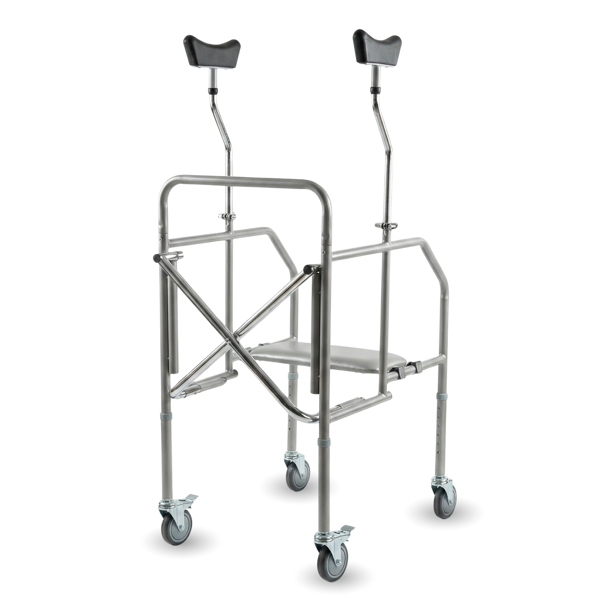Deambulatore Ascellare Pieghevole con Sedile Imbottito - Altezza regolabile