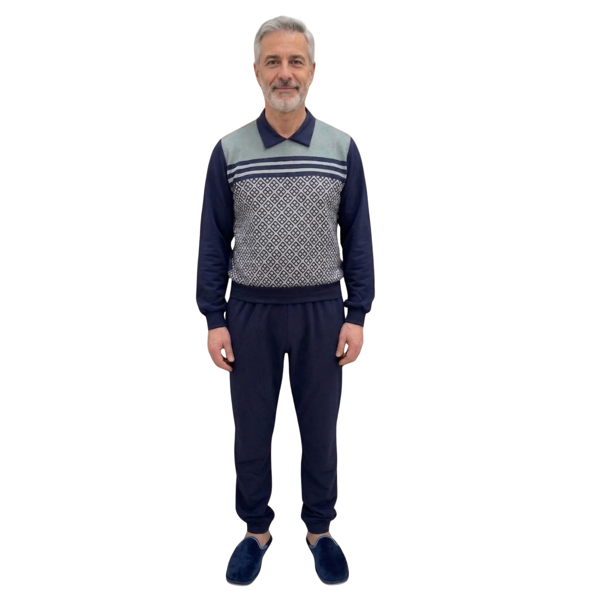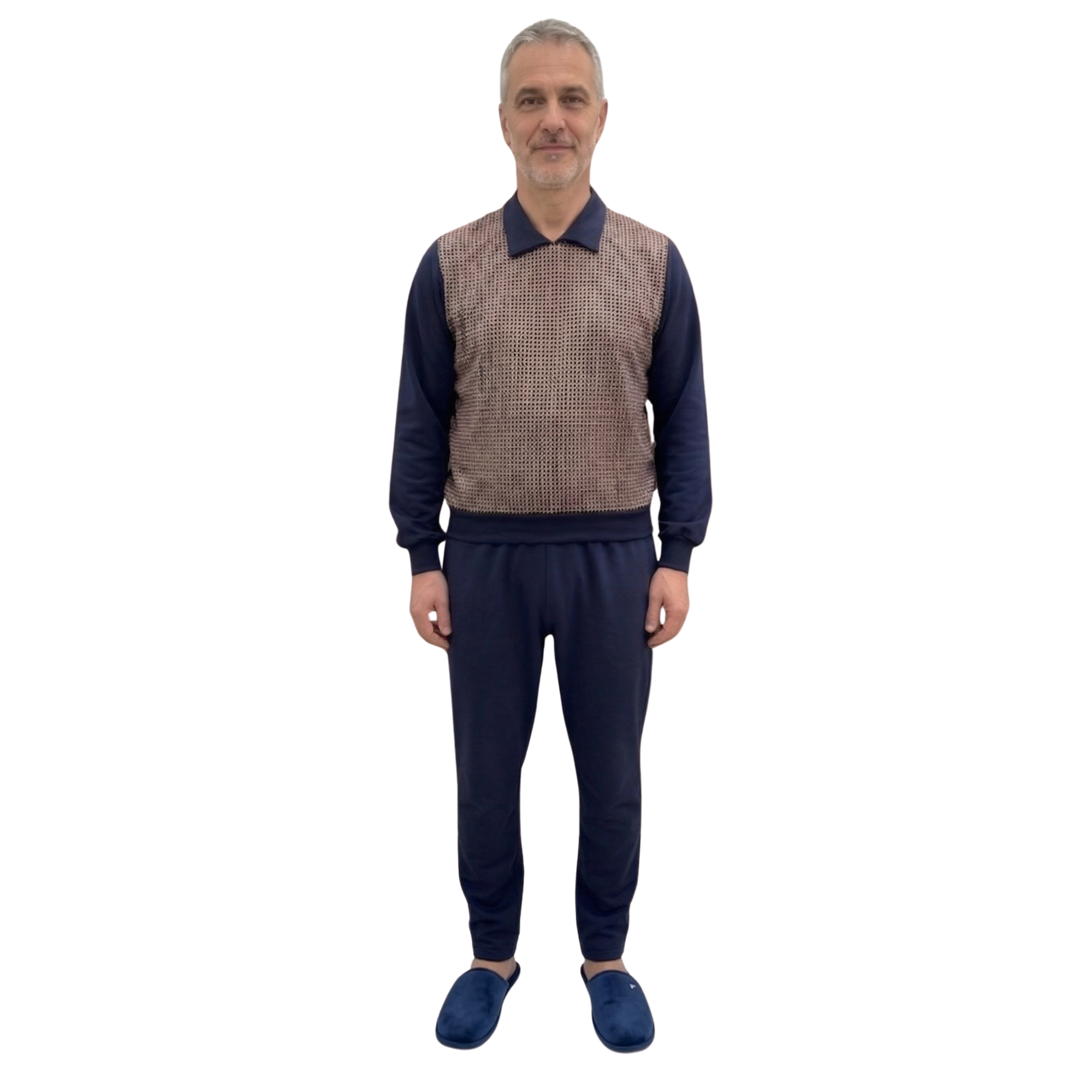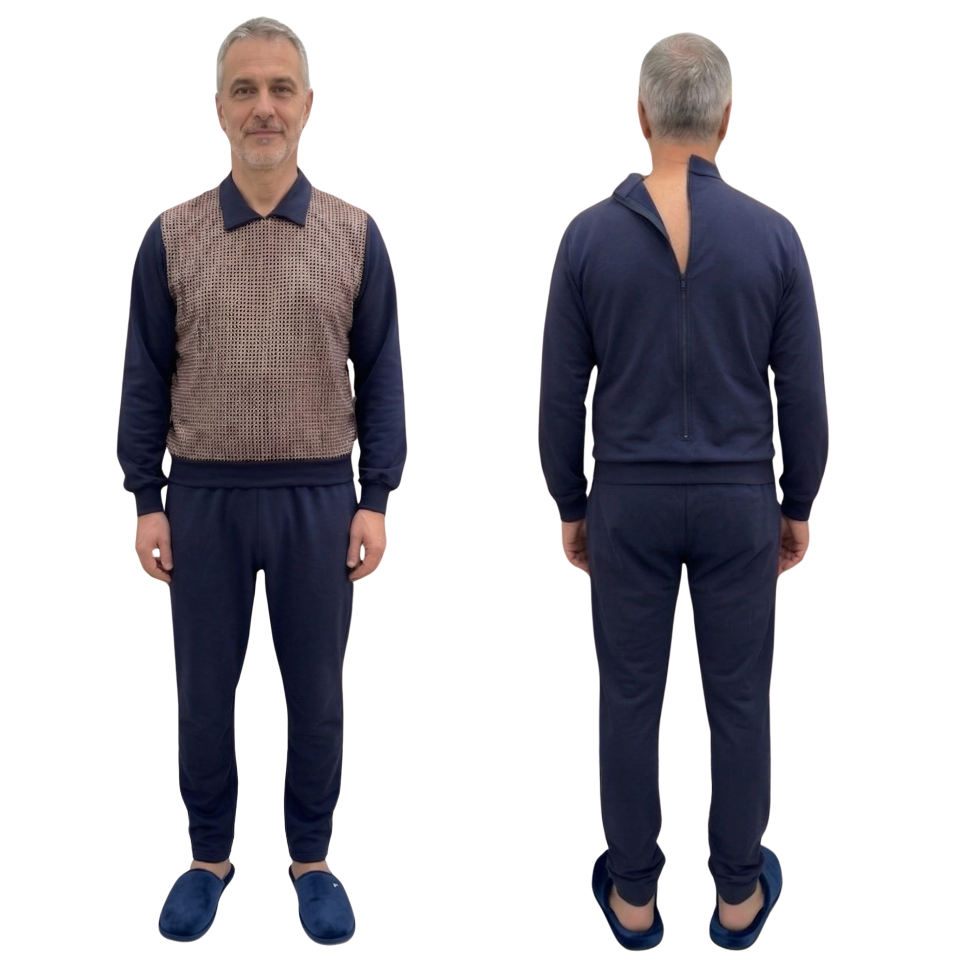 <tc>Geriatric Pajamas</tc> Two-Tone Onesie with Back Zipper for Seniors with Alzheimer's, Dementia, or Incontinence - 9023 ML PL