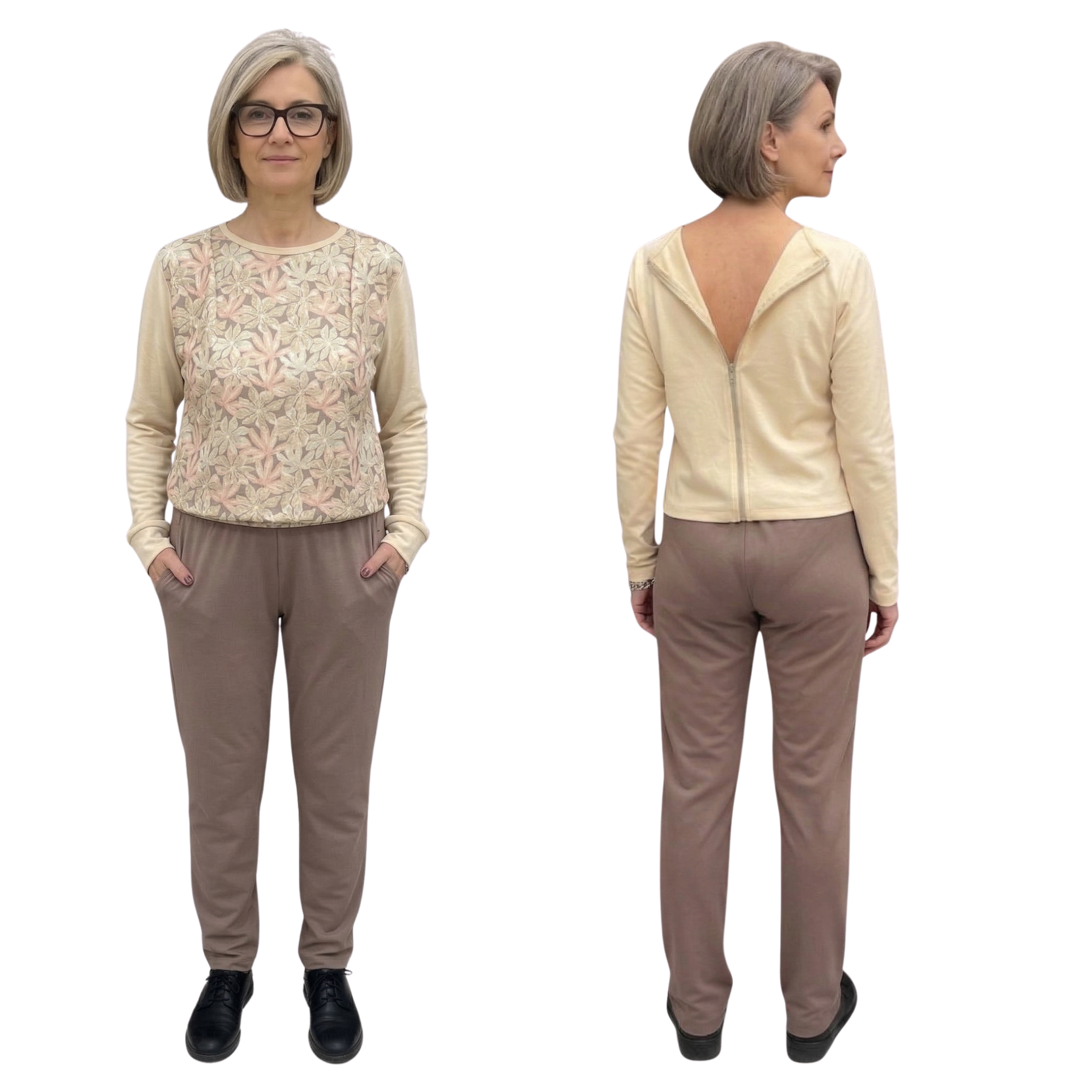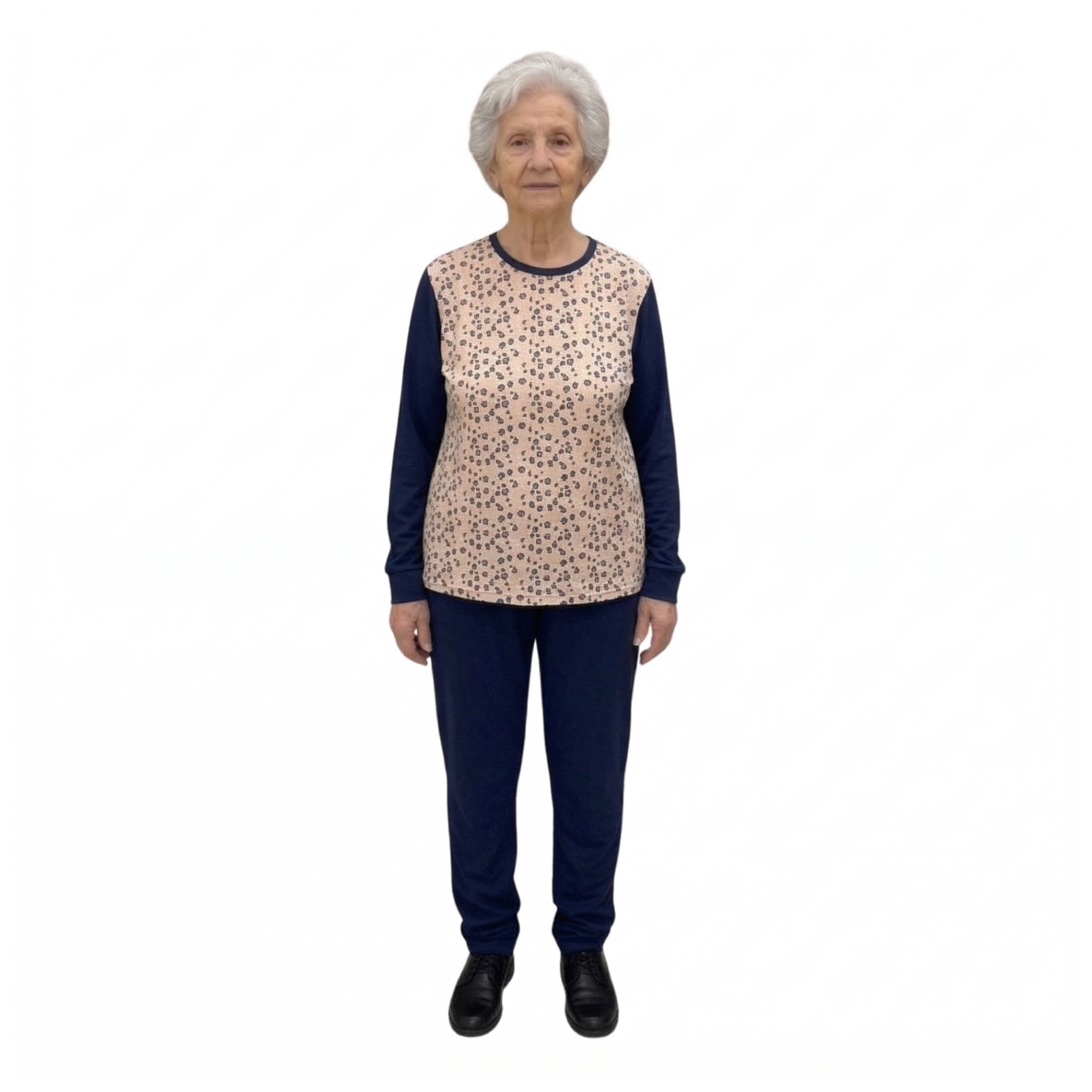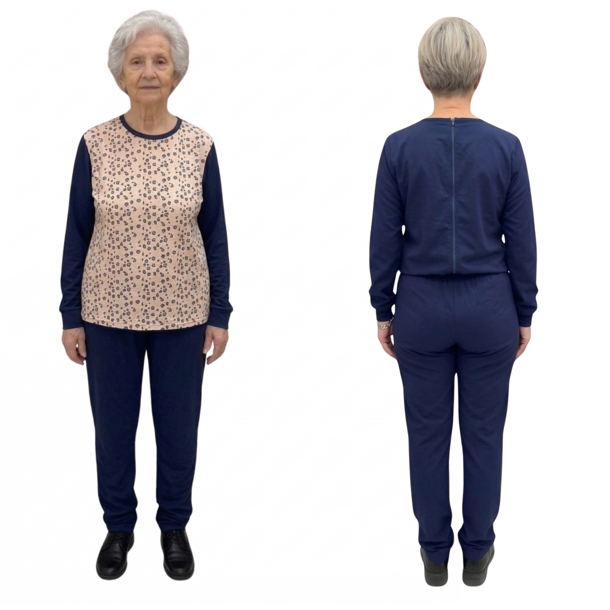 <tc>Geriatric Pajamas</tc> Two-Tone Onesie with Back Zipper for Seniors with Alzheimer's, Dementia, or Incontinence - 9023 ML PL