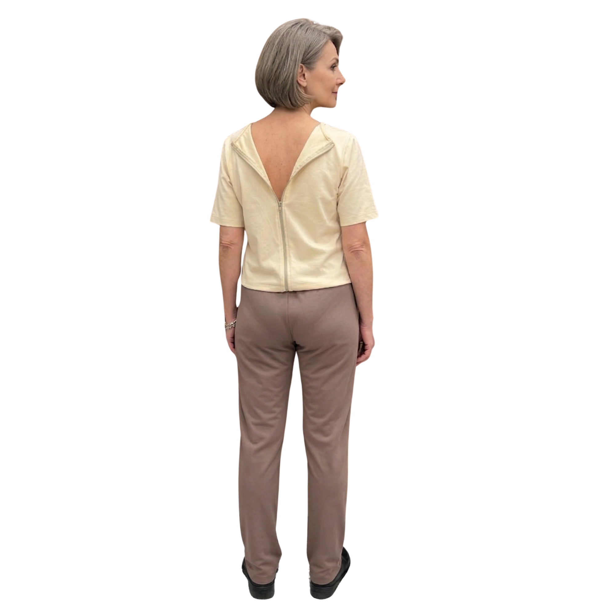 The suit is equipped with a back zip that allows it to be opened without accidental removal by the elderly patient or those suffering from mental illnesses such as Alzheimer's/Dementia.