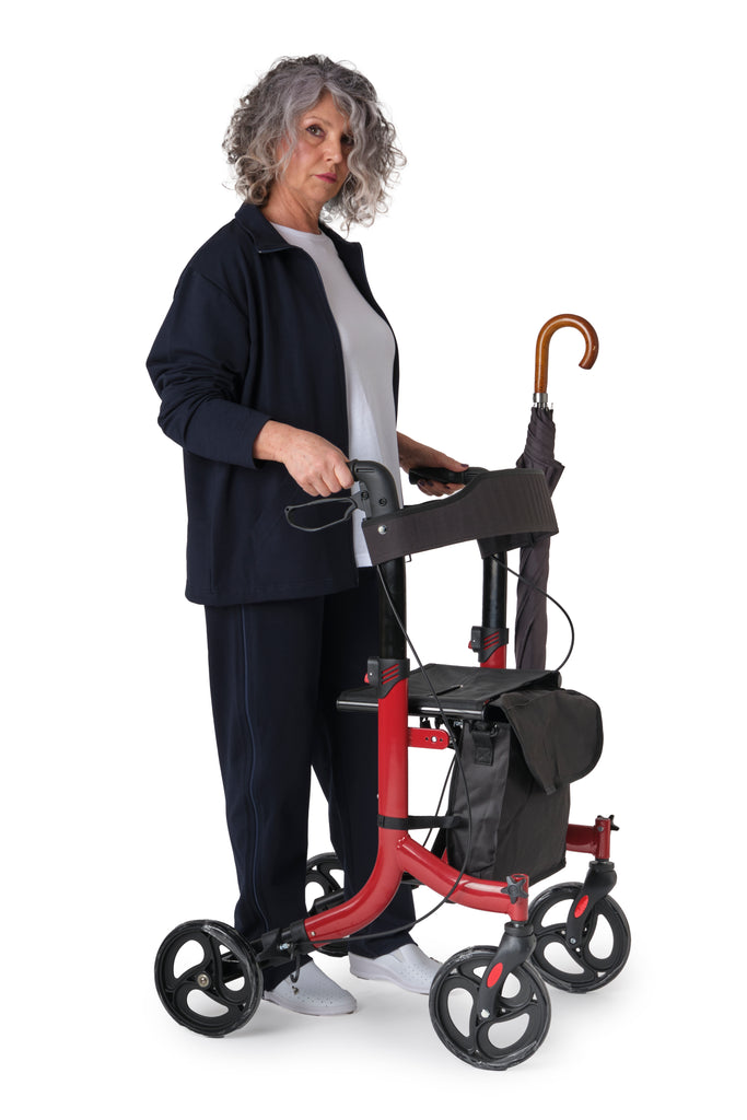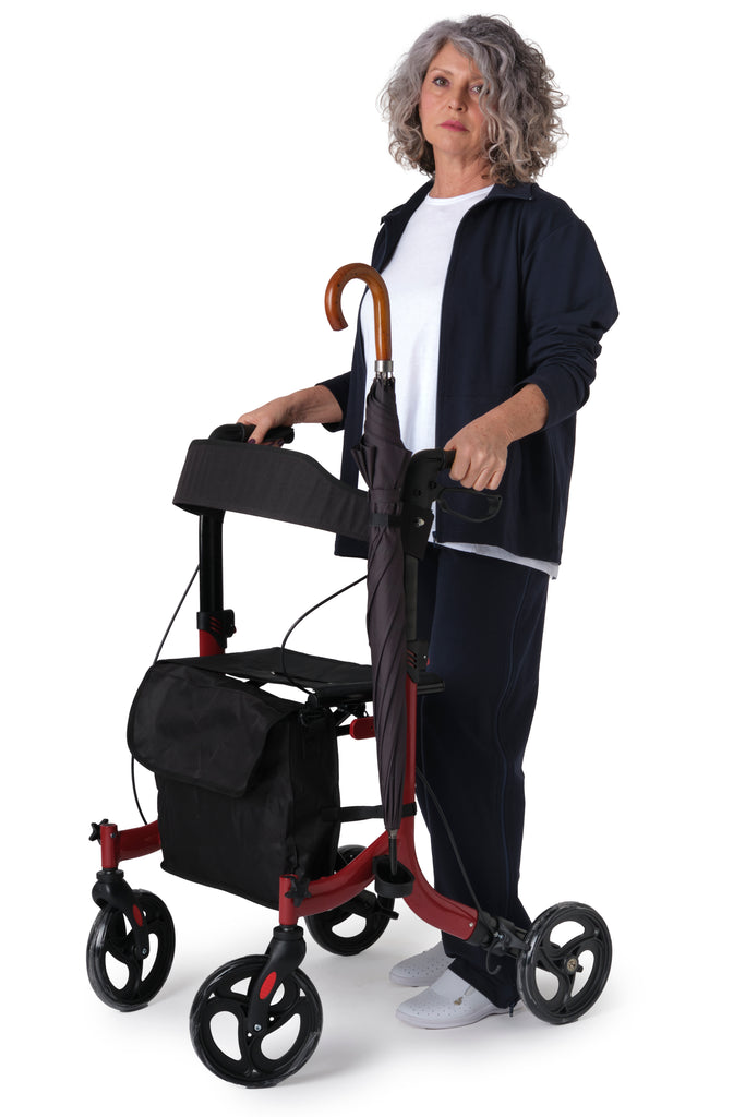 Déambulateur pliable pour les personnes âgées et compact en aluminium pour les personnes âgées et les personnes ayant des difficultés à marcher. Idéal pour être transporté partout, même en voiture, grâce à son poids de seulement 8 kg. Equipé de freins, d'un siège et d'un compartiment de rangement pratique pour une utilisation quotidienne tout au long de la journée. Avec porte-parapluie latéral.