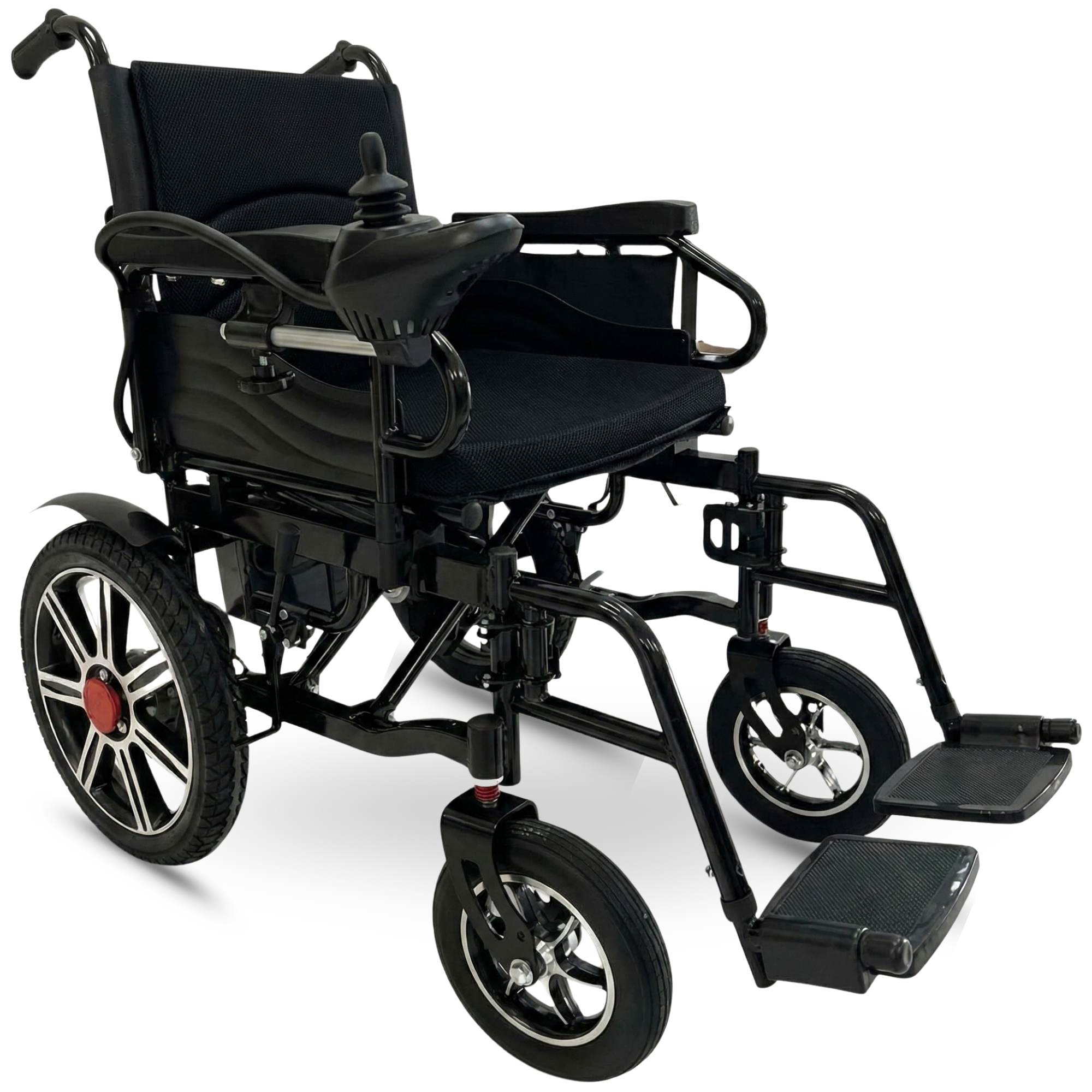 Riconquista la tua libertà di movimento con la nostra Sedia a Rotelle Elettrica Pieghevole di ultima generazione, colore nero elegante. Progettata per offrire massima autonomia e comfort, è la soluzione definitiva sia per gli spostamenti quotidiani in casa che per le avventure all'esterno, grazie alle sue ruote robuste perfette per affrontare terreni sconnessi e sterrati. Controllala facilmente tramite il pratico telecomando o il joystick sul bracciolo.