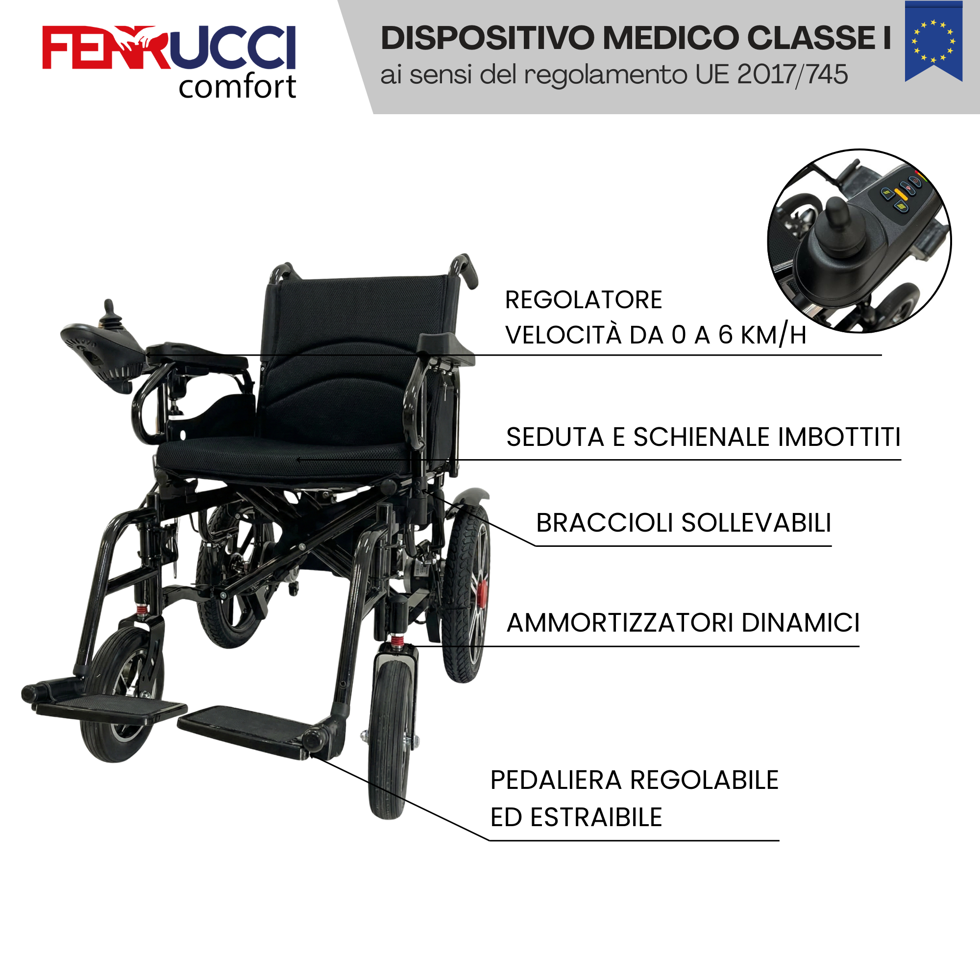 | Tipo di Controllo | Elettrico, Joystick sul Bracciolo, Telecomando |